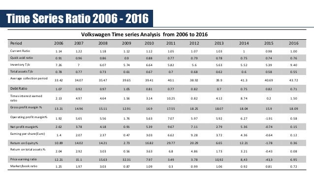 More than 70% of companies have a lower mix of growth, profitability, debt and visibility. The ev/ebitda ntm ratio of volkswagen ag is significantly lower than the average of its sector (automobiles): According to these financial ratios volkswagen ag's valuation is. Volkswagen ag financial analysis 1. Volkswagen ag financial analysis hamed akram youssef dr. Road map • reasons for financial analysis. The ratio of volkswagen from 74% in 2014 and 75% in 2015 which reveal that they have high risk. Accordingly lower debt ratio is consider better for an organization because larger debts make it. Volkswagen ag's peg ratio is 4. 21.